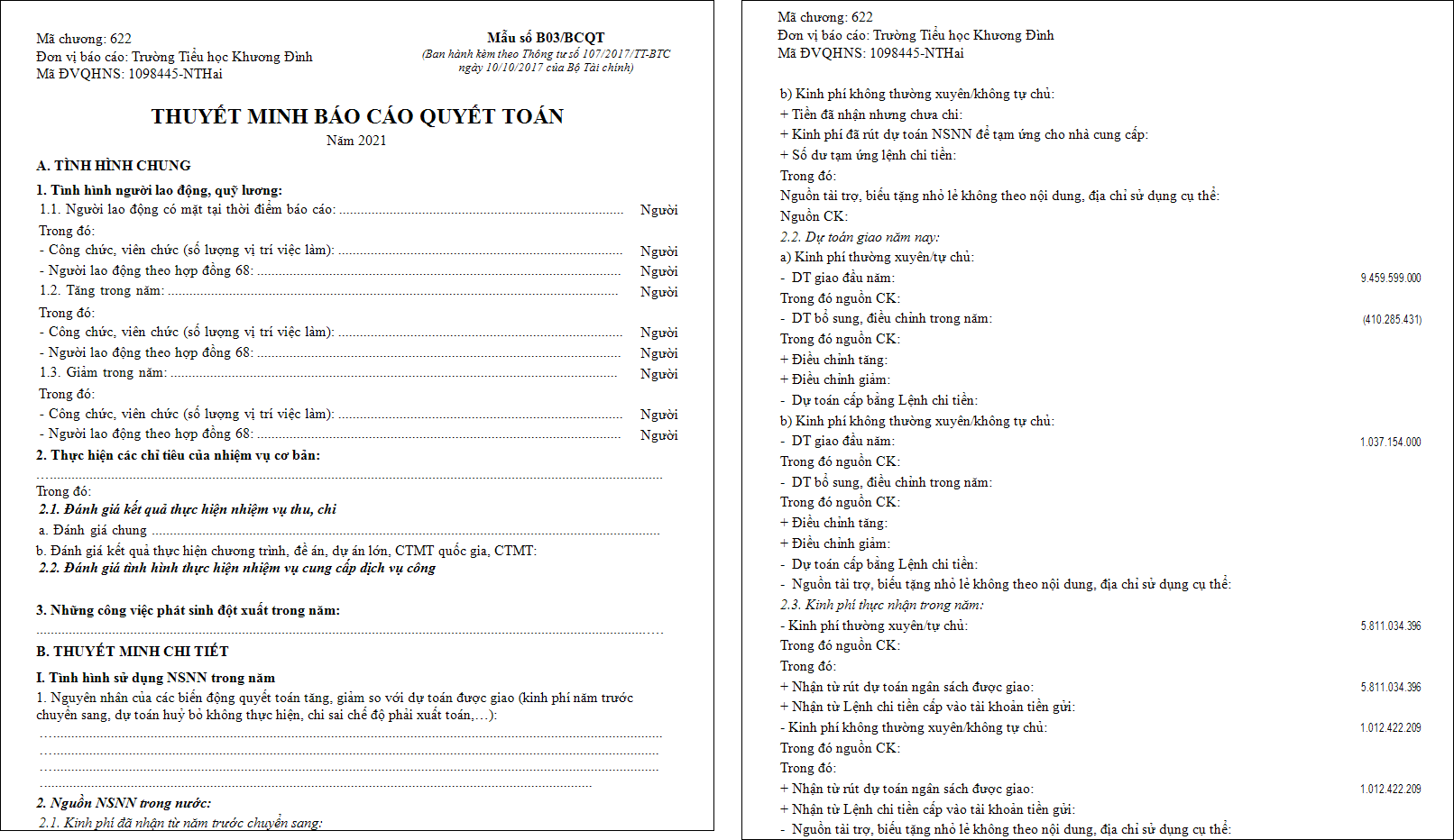 2. Thay đổi cách lấy số liệu Báo cáo B03/BCQT – Thuyết minh báo cáo quyết toán